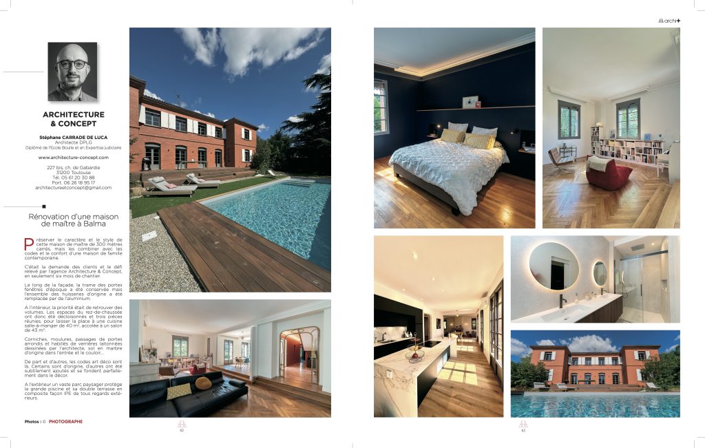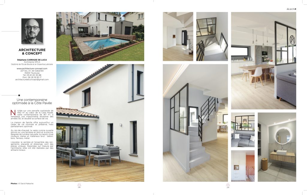 Dans le domaine de l’architecture, la reconnaissance par des acteurs spécialisés et par des médias dédiés constitue un véritable gage de crédibilité. C’est pourquoi je souhaite adresser un grand merci à Archi+ Tome 12 Toulouse et à Yves Daphé pour leur confiance et leur fidélité depuis 2015.